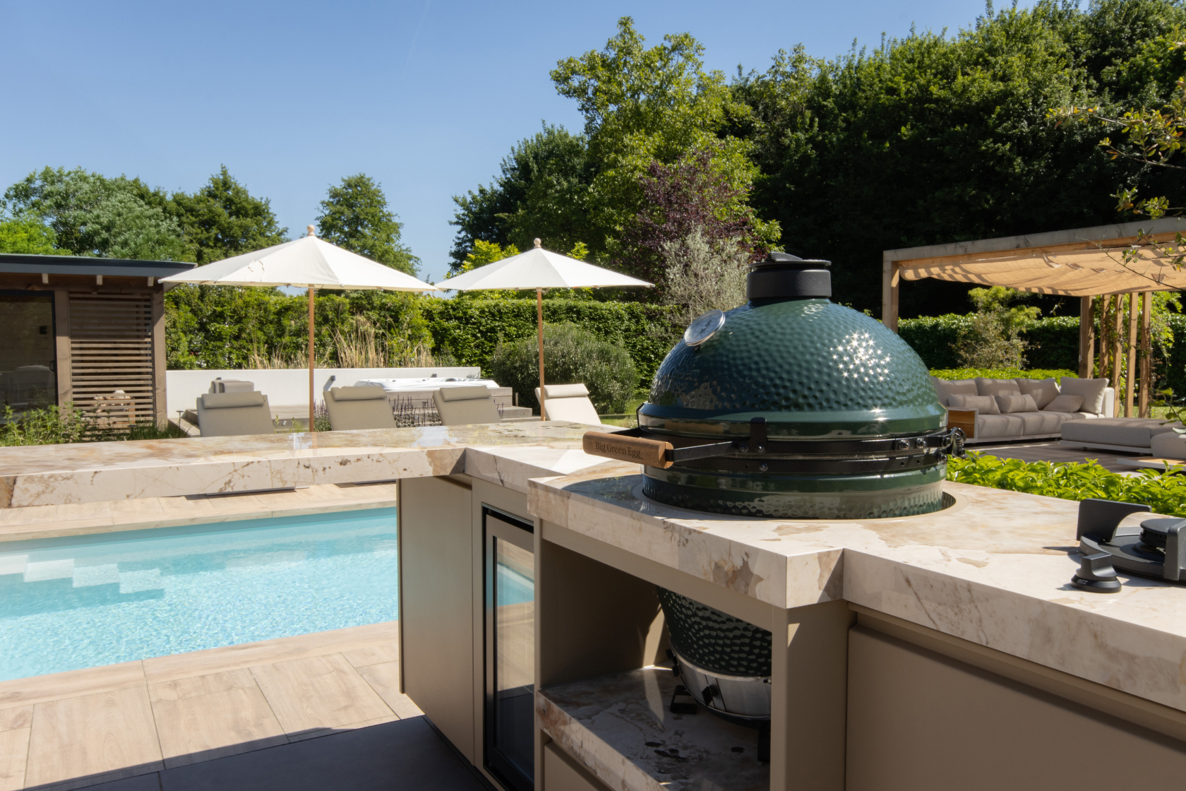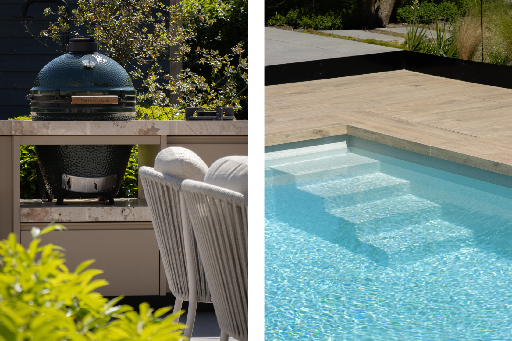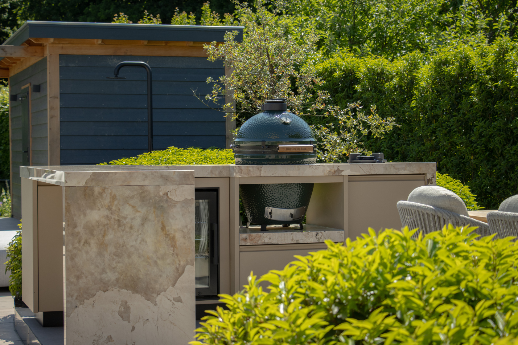 Voor Ryan en Esmee moest hun tuin meer zijn dan een mooi aangelegde buitenruimte. Ze wilden een plek waar je van ’s ochtends tot ’s avonds wilt zijn en dat ontspannen vakantiegevoel ervaart. Een buitenkeuken mocht daarbij natuurlijk niet ontbreken. Geen standaardmodel, maar een lichte, elegante eyecatcher die naadloos aansluit bij de sfeer van de tuin.